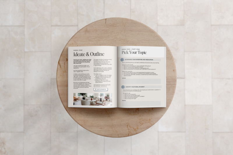 A deep dive into my proven, near-million-dollar workshop creation process—broken into four clear weeks with step-by-step teaching, exercises, prompts, and examples that make it click—without the fluff or overwhelm.